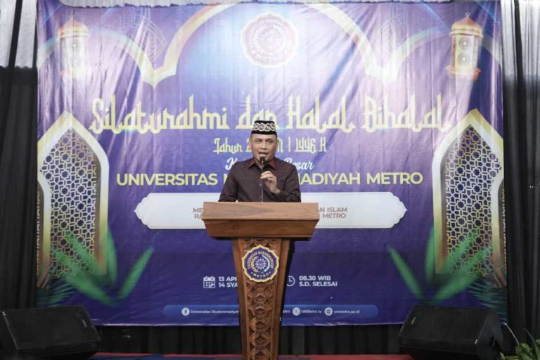 Bertemakan Menikmati dan Menebar Keindahan Islam Rahmatan Lil Alamin Universitas Muhammadiyah Metro menggelar acara halal bihalal, Minggu (13/04/2025).