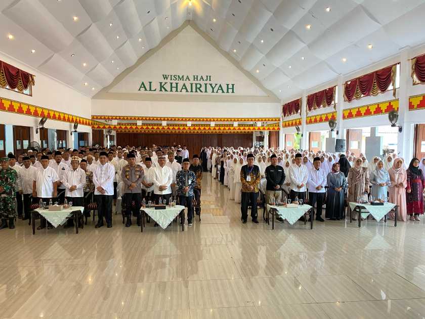 Ratusan calon jamaah haji (CJH) memadati Wisma Haji Al-Khairiyah, sejak pagi hari, Sabtu (12/4/2025). Acara ini adalah manasik haji yang merupakan simulasi akhir bagi calon jamaah ibadah haji sebelum diberangkatkan.